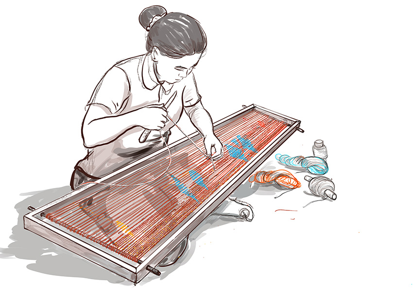 A crucial motivation behind this project lies in Cambodia’s traumatic twentieth-century history. During the 1970s, the civil war and the Khmer Rouge regime had catastrophic effects on artisanal textile production as well as the way people dress, especially for ceremonies and rituals. This decade of political, social, and humanitarian upheaval led to the collapse of fiber production, especially sericulture, and disrupted the transmission of weaving skills. Knowledge about techniques, looms, and equipment, as well as styles and motifs, was severely affected. In the post-conflict period, artisanal textile production gradually resumed, despite not returning to prewar levels. The genocide claimed about two million people between 1975 and 1979, a quarter of the population at the time, which led to a generational gap upending the transmission of specific dress customs.