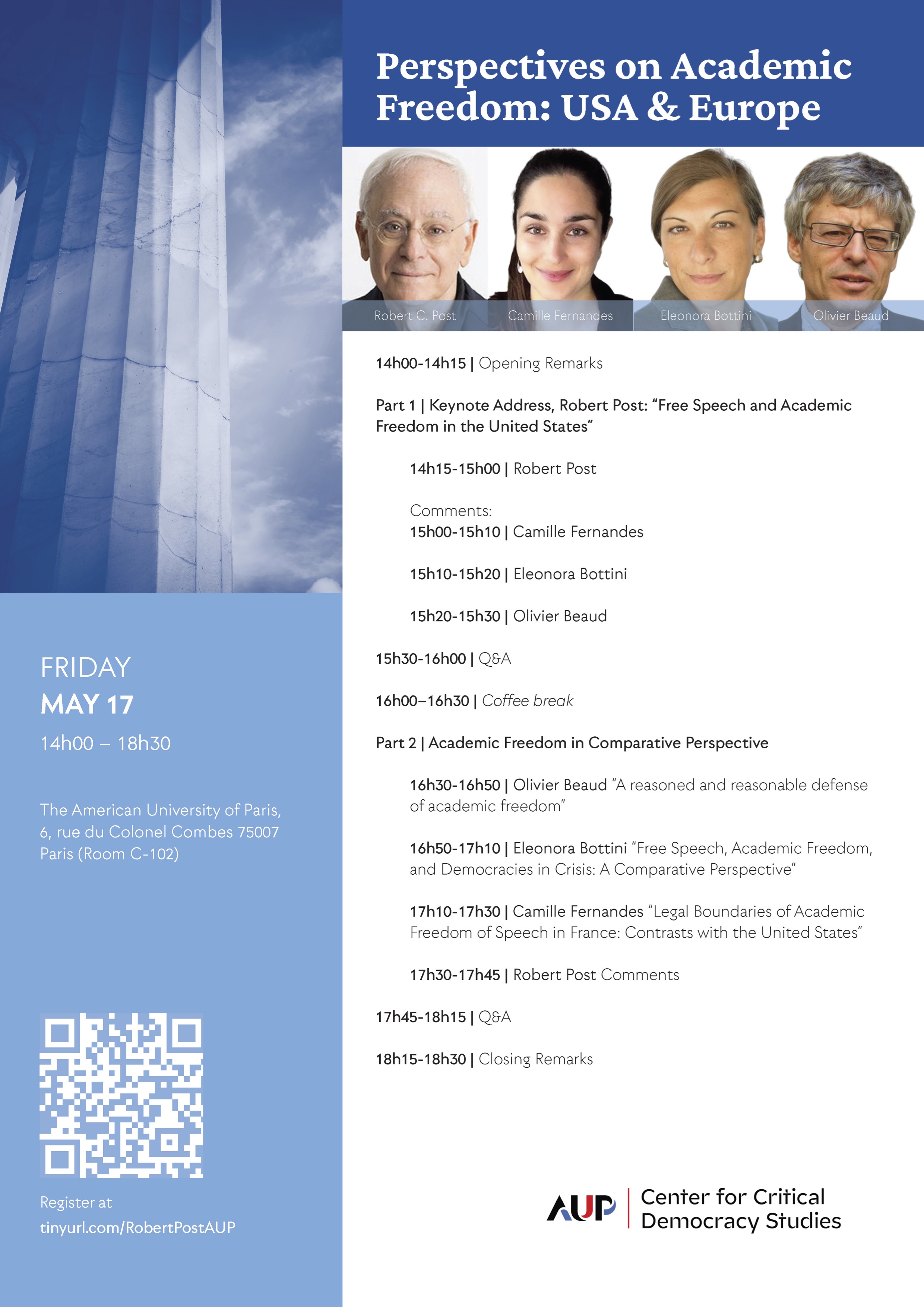 On May 17, 2024, theAUP Center for Critical Democracy Studies held a symposium on the contemporary challenges and threats to academic freedom in the United States and Europe.