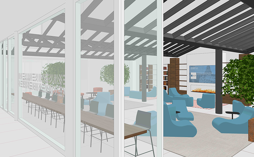 A new chapter is beginning on AUP’s campus, with the arrival of a new building at 127bis-129 rue de l’Université, the renovation of the AMEX Café, and reimagined lobbies for the Combes Student Life Center and the Quai d’Orsay Learning Commons, the largest site on campus.