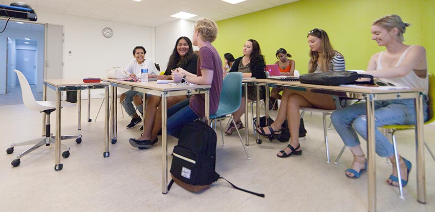 Today, the Grenelle Teaching and Mentoring Center is an active hub of teaching, learning and mentoring complete with upgraded classrooms, study spaces, faculty offices and an open kitchen for students. With new windows, lighting and glass walls, Grenelle is brighter and more open to its surroundings than ever.