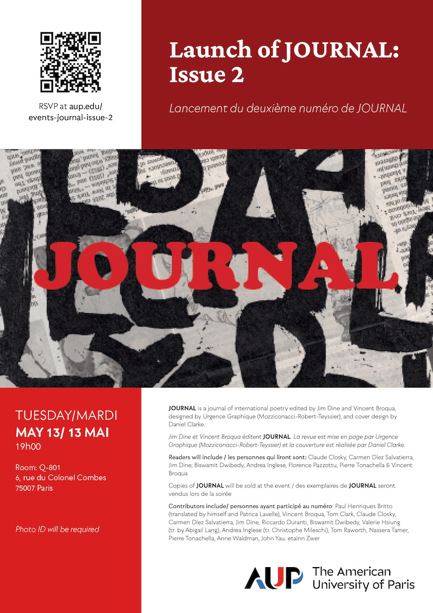 The American University of Paris and JOURNAL are pleased to invite you to the launch of JOURNAL issue 2