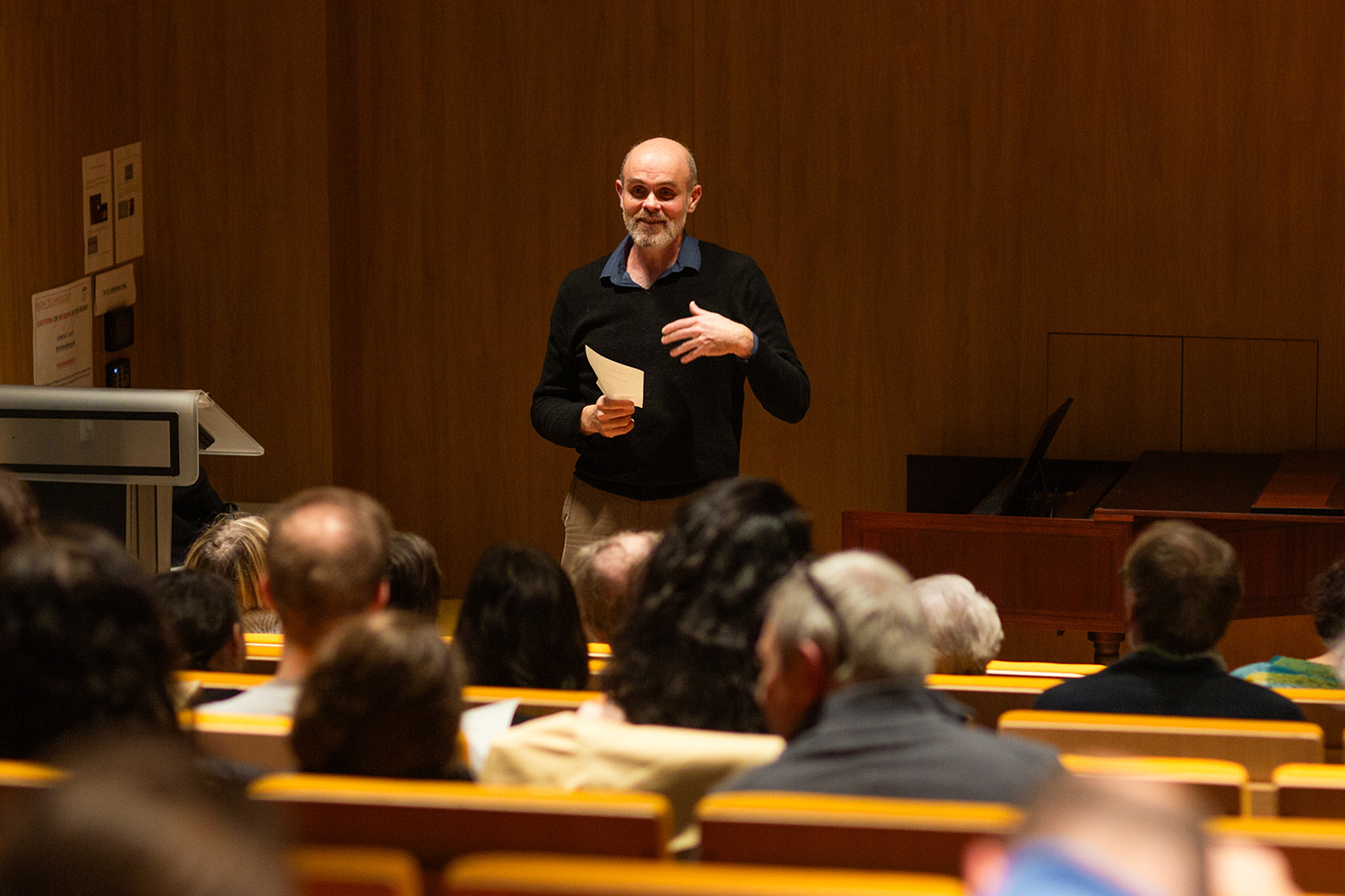 The event featured a presentation by Katsutani and Treihou, and–finally–a performance, featuring music from the Robertsbridge Codex (1360), a 14th century music manuscript that contains the earliest surviving music written for keyboard. Next, Treilhou is looking forward to restoring a historic Spanish clavichord, building a new clavicymbalum (an ancestor of the harpsichord) and completing the restoration of the portrait of Olivia de Havilland, namesake of the Monttessuy Center’s theater and a former trustee of AUP’s Board of Trustees.