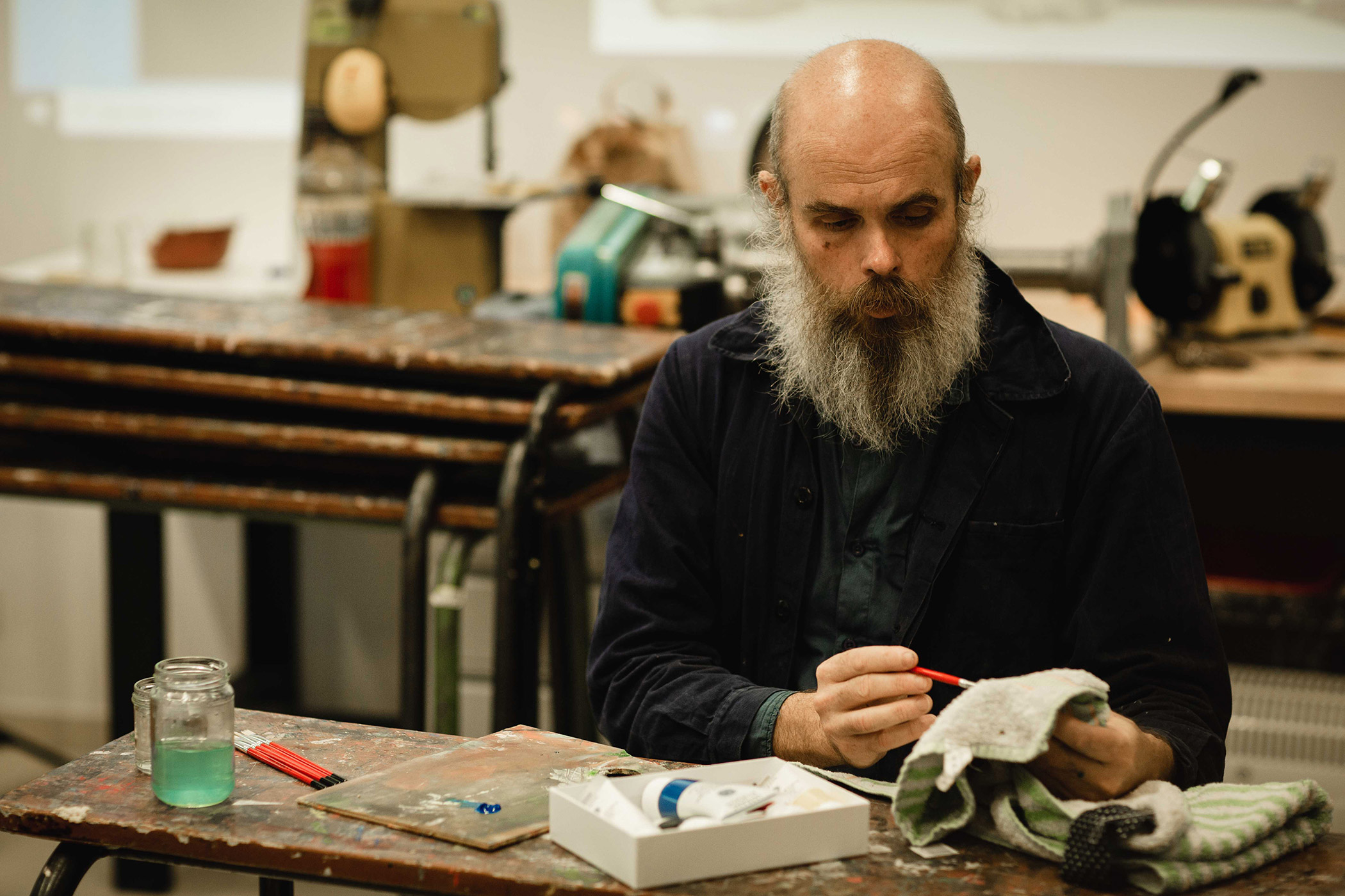 He says, “The center of my research is the idea of reconstitution, and how it can be a source of knowledge.” This applies to everyone–historians and practitioners. “One of the most interesting subjects for students is to understand different materials and how they can take control of them to make their own art, and not to be linked to the industrial production of supply.”