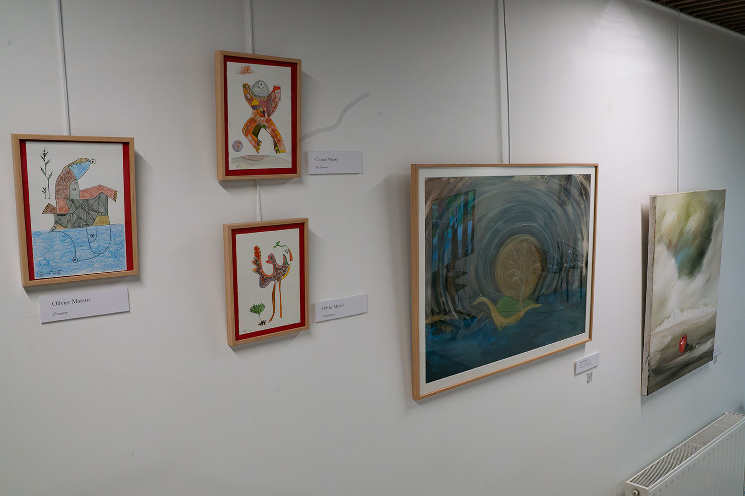 Conferences such as this are a great opportunity for faculty to involve students in their research, which Slavkova did by inviting students to be part of the organization of the conference, bridging it with the content of her course: Paris, Capital of Modern Art. Slavkova’s students contributed by writing papers on the Surrealist works on display at the Surréalisme exhibition at the Centre Pompidou; a selection of papers were then presented in a brochure in the Monttessuy Center for the Arts Gallery where the Fine Arts students of Prof. Sophie Pigeron’s and Delphine Debord’s classes showed their works. Slavkova’s students also manned information desks at the conference, took care of participant registration, catering and the cocktail, and guided people from one place to another on campus. The Fine Arts students of as Randa Massot, an AUP staff member who runs the Staff Art Club, also had opportunity to hang some pieces for artists and creators featured at Combes. Massot’s work has elements of biomorphism and natural history, which Slavkova connected to Surrealism.