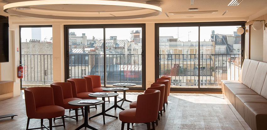 New technology-rich classrooms are designed to foster faculty–student interaction, while the Omid & Gisel Kordestani Rooftop Conference Center, complete with breathtaking views toward Invalides and the Grand Palais, hosts public events, allowing faculty to collaborate beyond AUP’s campus.