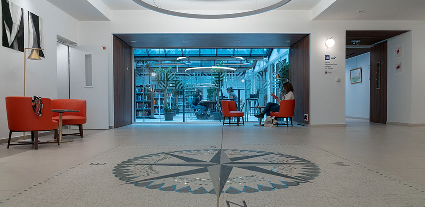 Higher up in the building, faculty-centric facilities such as the Teaching and Learning Center widen the appeal beyond the student body, as does the building’s research center: the George and Irina Schaeffer Center for the Study of Genocide, Human Rights and Conflict Prevention.