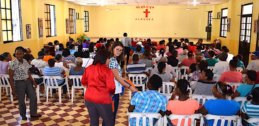 Patricia and Marina de los Santos (ADOPEM) registering attendees to the community talk on gender roles in San Juan.>