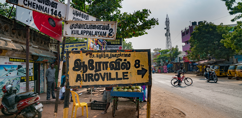 Since its inception in 2008-2009, the Sustainable Development Practicum has taken students to Auroville, India.>