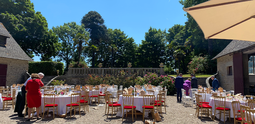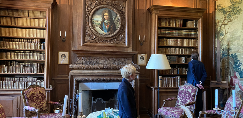 Upon arriving at the Château in the morning, we were welcomed with a lovely spread of breakfast, juice, and coffee so we could fuel up before entering the tent to listen to the line-up of speakers, roundtable discussions, and Q&A panels. We ate lunch outside on the castle grounds, and got to talk with other conference attendees. Dominic, Jennifer and I made friends with some of the students from the Collège d'Europe, and really enjoyed chatting with them between speakers. While it was exceptionally hot outside, I was able to take rests inside the châteauduring the day. At one point when I was joined by a group of attendees, we were offered an impromptu, private tour of the château. We were even allowed inside of Tocqueville's personal library and study, which was just so incredibly cool to see.
