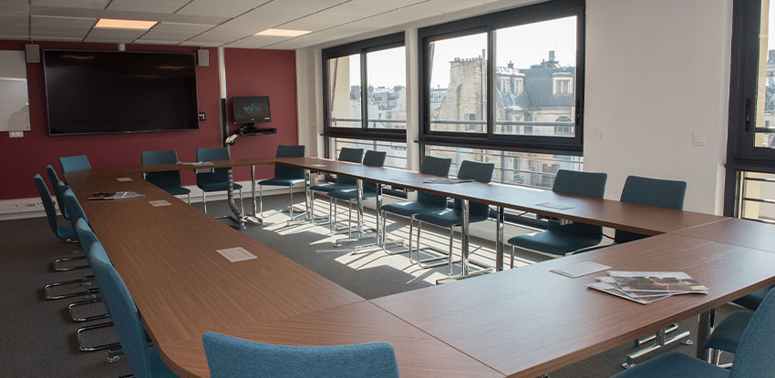 New technology-rich classrooms are designed to foster faculty–student interaction, while the Omid & Gisel Kordestani Rooftop Conference Center, complete with breathtaking views toward Invalides and the Grand Palais, hosts public events, allowing faculty to collaborate beyond AUP’s campus.
